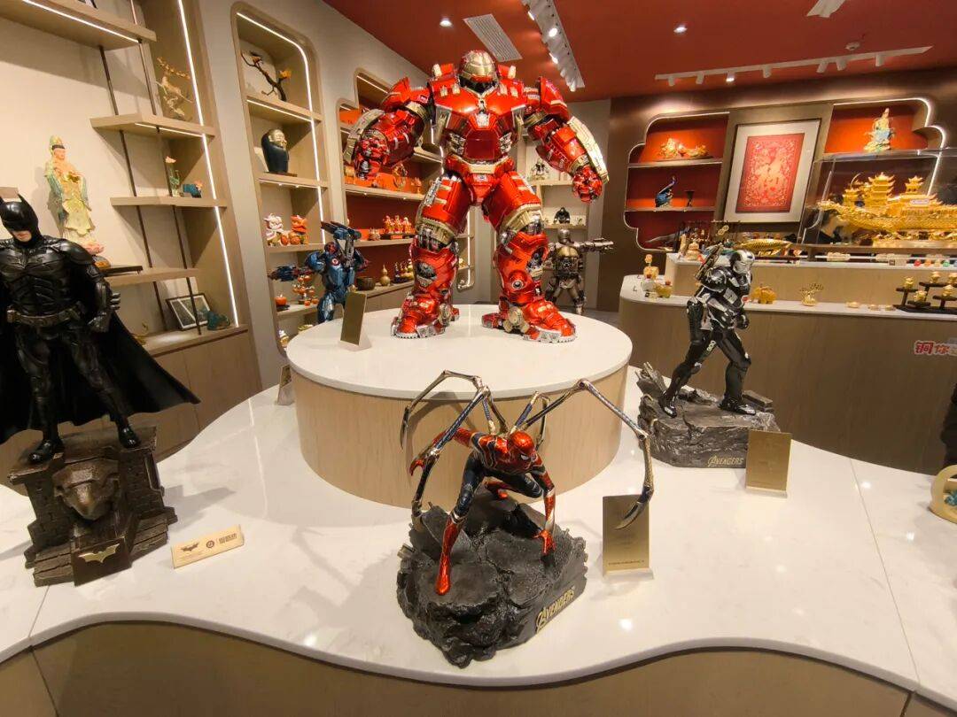 铜师傅闭键售卖的便是铜制工艺品。记者正在深圳线下门店里提神到,铜师傅的展柜列举的,既有 “大圣传奇”、变形金刚等热门IP联名款,也有铜葫芦、财神雕塑、“聚宝盆”等经典款铜成品。